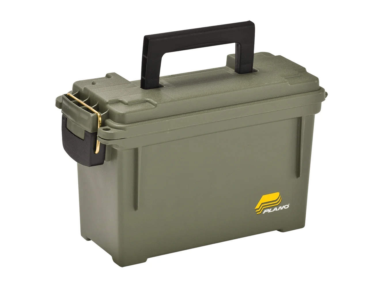 Keep your ammunition safe and organized with this Plano Can Water-Resistant Ammo Box. It is made of durable, high-quality, and water-resistant plastic. This Plano O-ring seal box secures firmly with a brass-bailed latch and has two holes in the lid through which you can place a lock to secure the contents. It also features heavy-duty handles for easy portability. Whether you are stocking up for a busy hunting season, organizing your ammo for easy access, or storing it away for later, this sturdy box helps make the task easier.