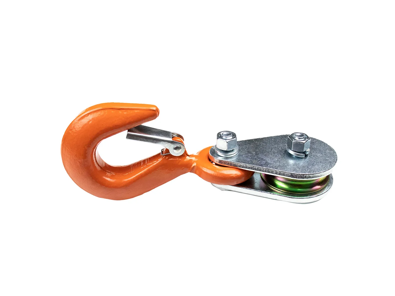 This selection comes with the deconstructed parts of the pulley block: a spacer, 2 pulley sides, a block wheel, 4 lock nuts, a sling eye hook, and 4 difference-sized screws. The Pulley Block Kit is used in the RC23, RC30, 712, 912, and 915 trailer winches.