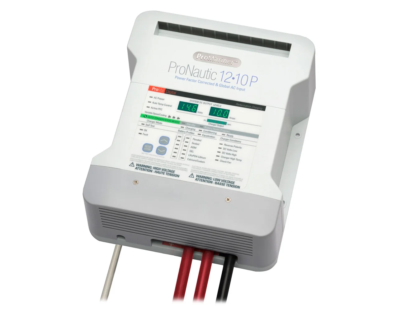 Industry recognized with the 2010 IBEX Innovation Award, ProNauticP employs our ProMar Digital Performance Charging Platform which combines all digital control and software-based power conversion technology with global energy management features. ProNauticP addresses the trend of incorporating and using more 12-volt electronics on-board today’s power, sail, cruising and sport fishing boats. Boasting twelve digitally-controlled performance charging profiles with finger tip selection, ProNauticP fully charges, conditions, maintains and re-conditions batteries while extending battery life and maximizing battery reserve power performance. ProNauticP is Power Factor Corrected with auto-ranging global AC input allowing all models to operate off a standard household power connection. Featuring dual digital displays for real-time display of actual charging voltage and amperage and AC power-on diagnostics with pass or fail status in addition to discreet fault indication for mis-wiring or adverse battery bank conditions. Designed to provide more time on the water enjoying what you like most… boating.