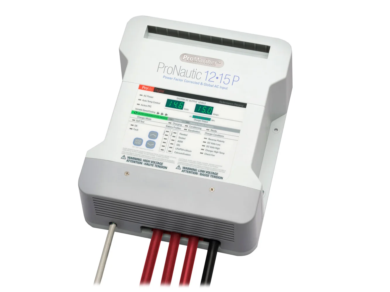 Industry recognized with the 2010 IBEX Innovation Award, ProNauticP employs our ProMar Digital Performance Charging Platform which combines all digital control and software-based power conversion technology with global energy management features. ProNauticP addresses the trend of incorporating and using more 12-volt electronics on-board today’s power, sail, cruising and sport fishing boats. Boasting twelve digitally-controlled performance charging profiles with finger tip selection, ProNauticP fully charges, conditions, maintains and re-conditions batteries while extending battery life and maximizing battery reserve power performance. ProNauticP is Power Factor Corrected with auto-ranging global AC input allowing all models to operate off a standard household power connection. Featuring dual digital displays for real-time display of actual charging voltage and amperage and AC power-on diagnostics with pass or fail status in addition to discreet fault indication for mis-wiring or adverse battery bank conditions. Designed to provide more time on the water enjoying what you like most… boating.