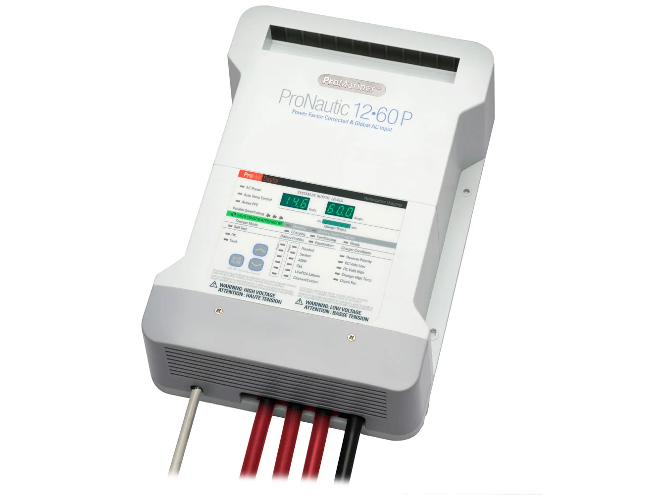 Industry recognized with the 2010 IBEX Innovation Award, ProNauticP employs our ProMar Digital Performance Charging Platform which combines all digital control and software-based power conversion technology with global energy management features. ProNauticP addresses the trend of incorporating and using more 12-volt electronics on-board today’s power, sail, cruising and sport fishing boats. Boasting twelve digitally-controlled performance charging profiles with finger tip selection, ProNauticP fully charges, conditions, maintains and re-conditions batteries while extending battery life and maximizing battery reserve power performance. ProNauticP is Power Factor Corrected with auto-ranging global AC input allowing all models to operate off a standard household power connection. Featuring dual digital displays for real-time display of actual charging voltage and amperage and AC power-on diagnostics with pass or fail status in addition to discreet fault indication for mis-wiring or adverse battery bank conditions. Designed to provide more time on the water enjoying what you like most… boating.