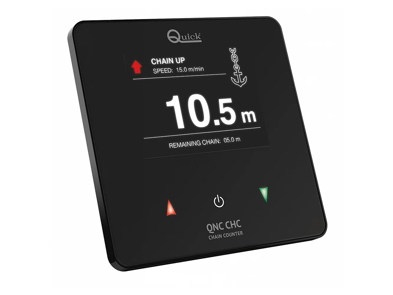 QNC CHC is a complete and reliable tool to remotely operate the windlass and check the length of the lowered chain by means of the color graphic display. The panel surface is completely black tempered glass.