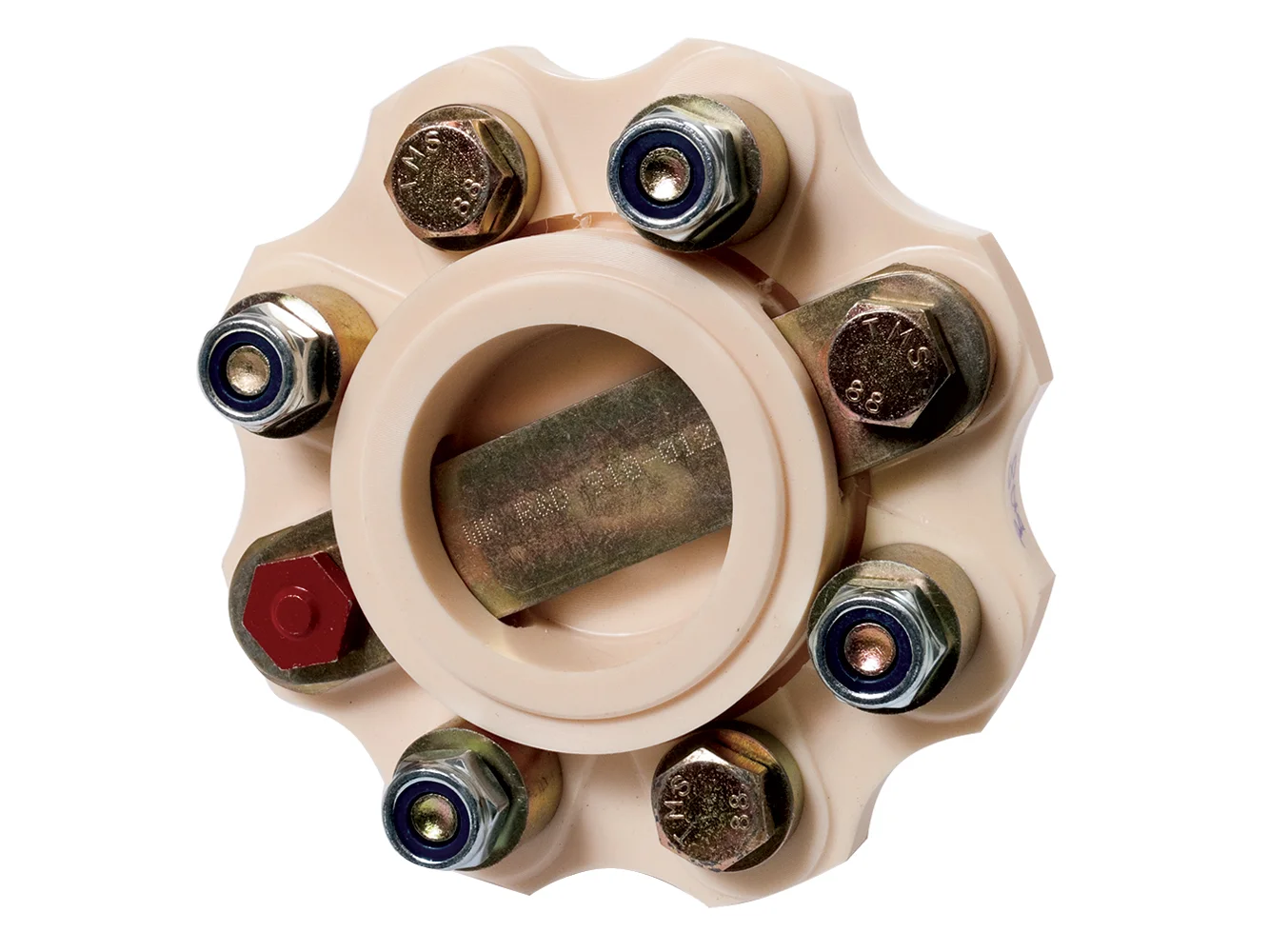The flexible disc is machined from a resilient and durable polyurethane. It allows the unit to flex, absorbing vibrations and temporary misalignment of the shaft and engine due to movement of the engine or flexing in the vessel’s structure.