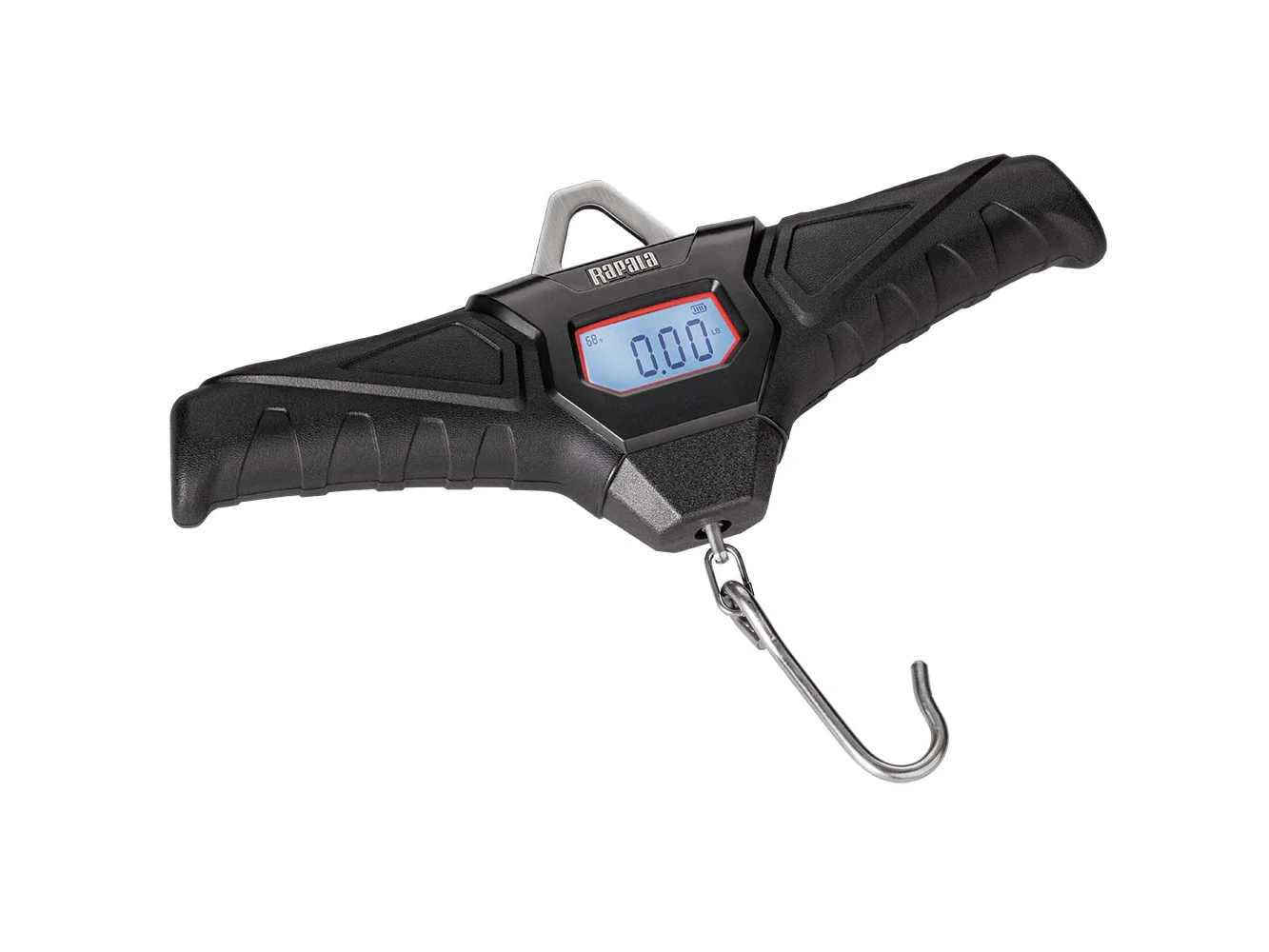 A perfect scale when taking photos or filming. The front and back screens show weight simultaneously to both angler and observer. Three weight display options, choose lb./oz., decimal lbs. or kg. Ambient temp displays current air temperature. Tare weight allows for weighing fish in a container, without including the weight of the container in the reading. The water-resistant ergonomic comfort handles are built for two-handed operation when handling a heavy catch. Heavy-duty fixed reinforced hanger and chrome plated hook. Requires 2 AA batteries (not included).