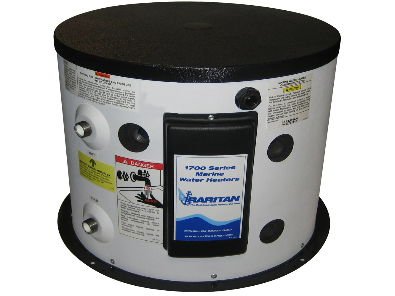 Raritan’s 1700 Series Water Heaters are built for the long haul. A glass-lined steel tank and a rust-proof jacket keep the Raritan water heater looking great and lasting for many years. Research has shown that glass-lined steel tanks are more durable than tanks made from just stainless steel. To increase longevity and fluctuations in water quality, Raritan includes a sacrificial magnesium anode that ensures a long tank life.