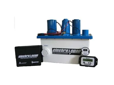 The Electroscan is a flow through device so once the toilet is flushed it pushes out previously treated waste and begins treating the flush that has just entered the first macerating chamber.