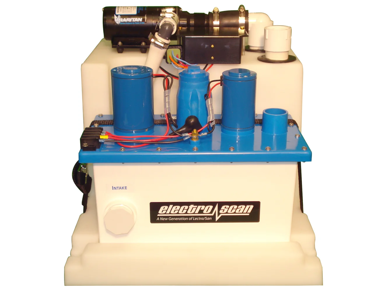A 15 gallon holding tank combined with a Type I MSD capable of processing up to 140 gallons of waste per week. Locking switch to prevent accidental discharge.