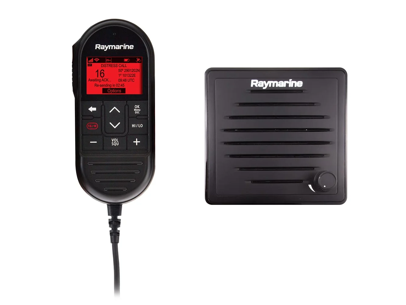 The Ray90 system includes 1 RayMic wired handset and a passive speaker kit. Expand your system with an additional RayMic handset and remote speaker. For noisy environments choose the optional active remote speaker. No matter how small or how large your vessel is, the Ray90 all the power and performance you need for essential communications on the water.
