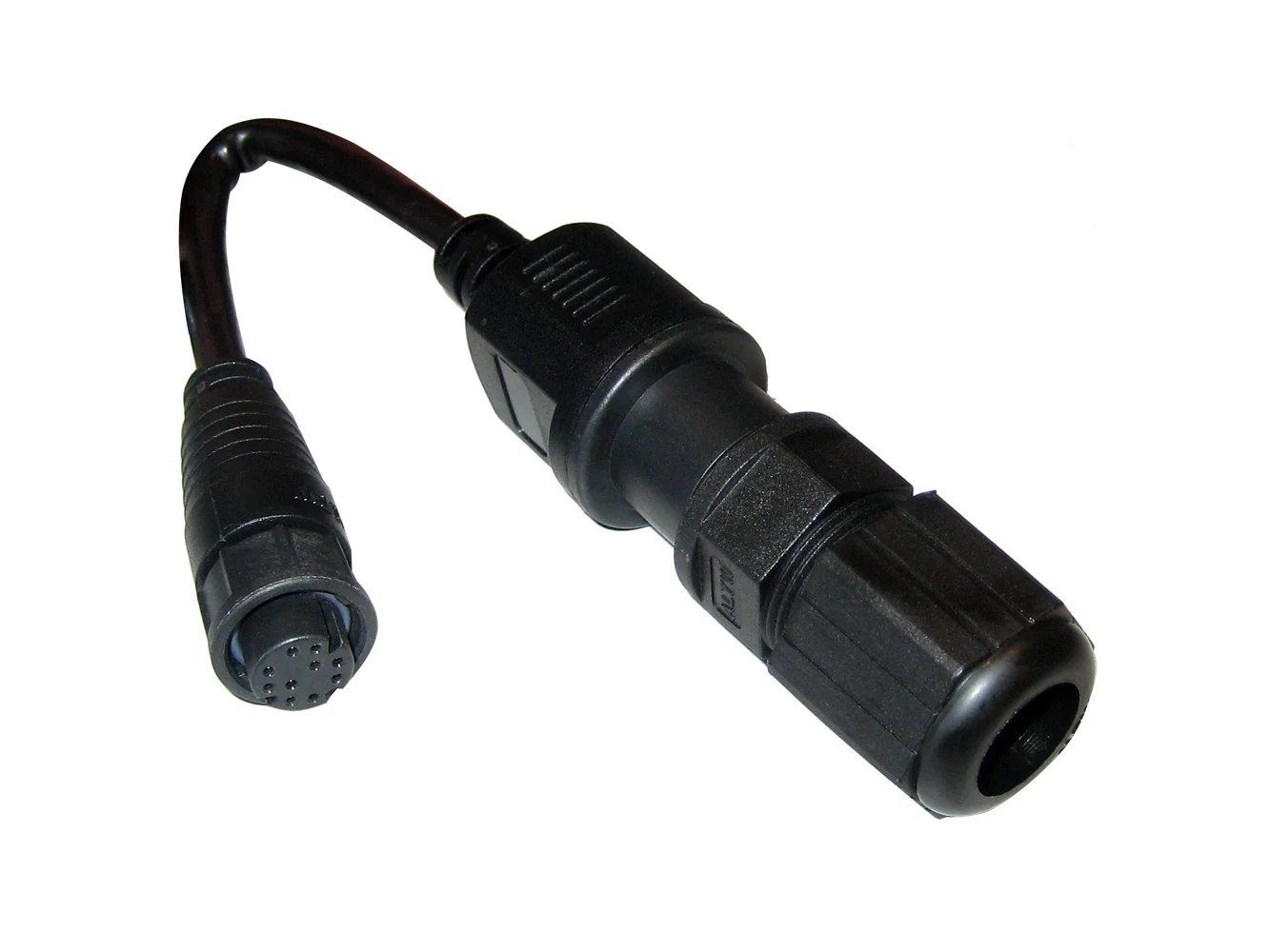 This adapter has a RayNet Female connector at one end, and a RJ45 Female Gland connector at the other end. The Gland makes the RJ45 Female socket watertight.