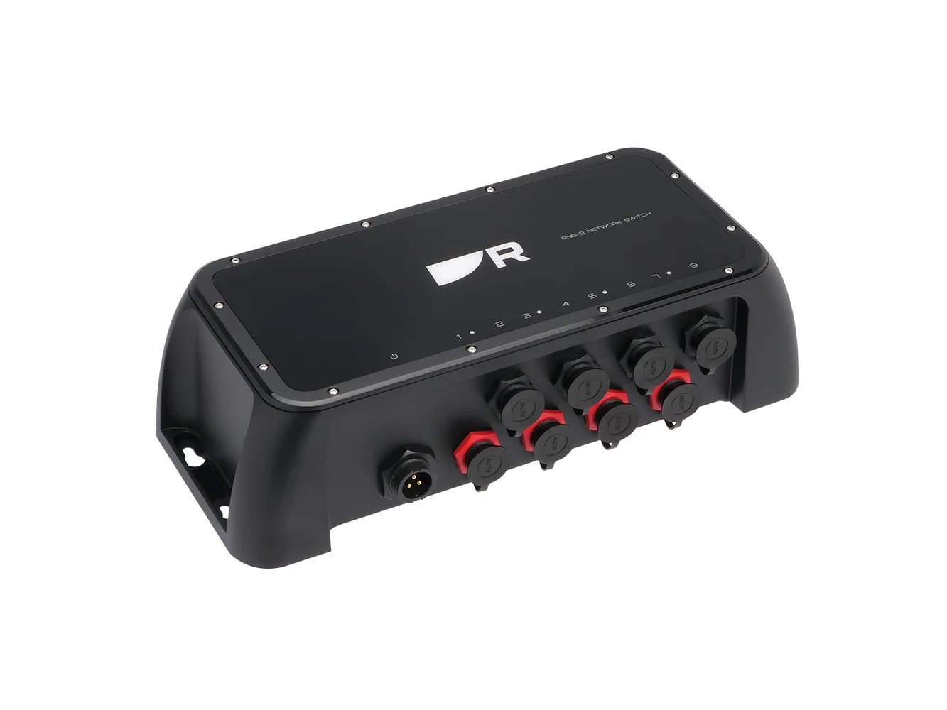 The RNS-8 network switch is a premium network switch for integrated Raymarine chartplotter systems. Use the RNS-8 to integrate Axiom displays with radars, sonar modules, and FLIR thermal cameras. The RNS-8 features 4 dedicated Power-Over-Ethernet (POE) ports for integrating and powering POE-compatible devices like CAM300 marine IP cameras and RMK-10 remote keypads. The RNS-8 also supports networking with Raymarine YachtSense digital control systems and the YachtSense Link marine mobile router. Multiple RNS-8 switches can be daisy-chained together for larger systems. The RNS-8 is simple to install and requires no complicated setup.