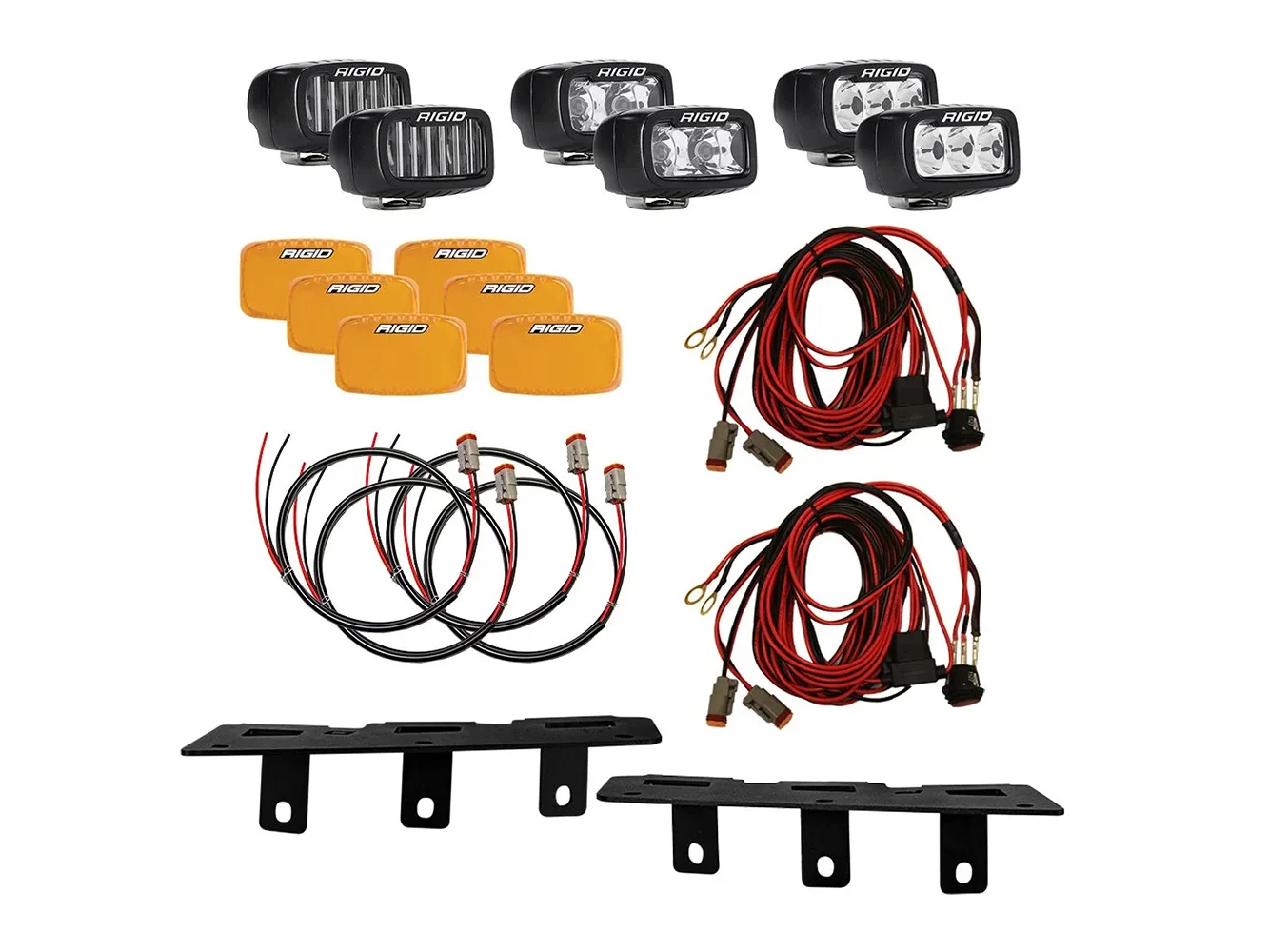 The RIGID Ford Modular Bumper Triple SR-M Fog Light Kit is designed for the 2021+ Bronco Ford Performance Heavy Duty Modular Bumper. This light kit comes with six SR-M series lights, two SAE, two Drives, and two Spots. All of RIGID’s OE Brackets and Mounts are made with stainless steel and covered with UV and abrasion-resistant powder coat to ensure years of use in the harshest conditions. Own The Night with RIGID’s Modular Bumper Triple SR-M Fog Light Kit for your 2021 Ford Bronco.