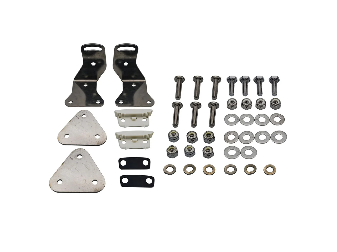 A stainless-steel hardware kit designed to be used with RIGID's White RDS-Series lights. The kit includes brackets, bushings, marine hardware, and mounting hardware.