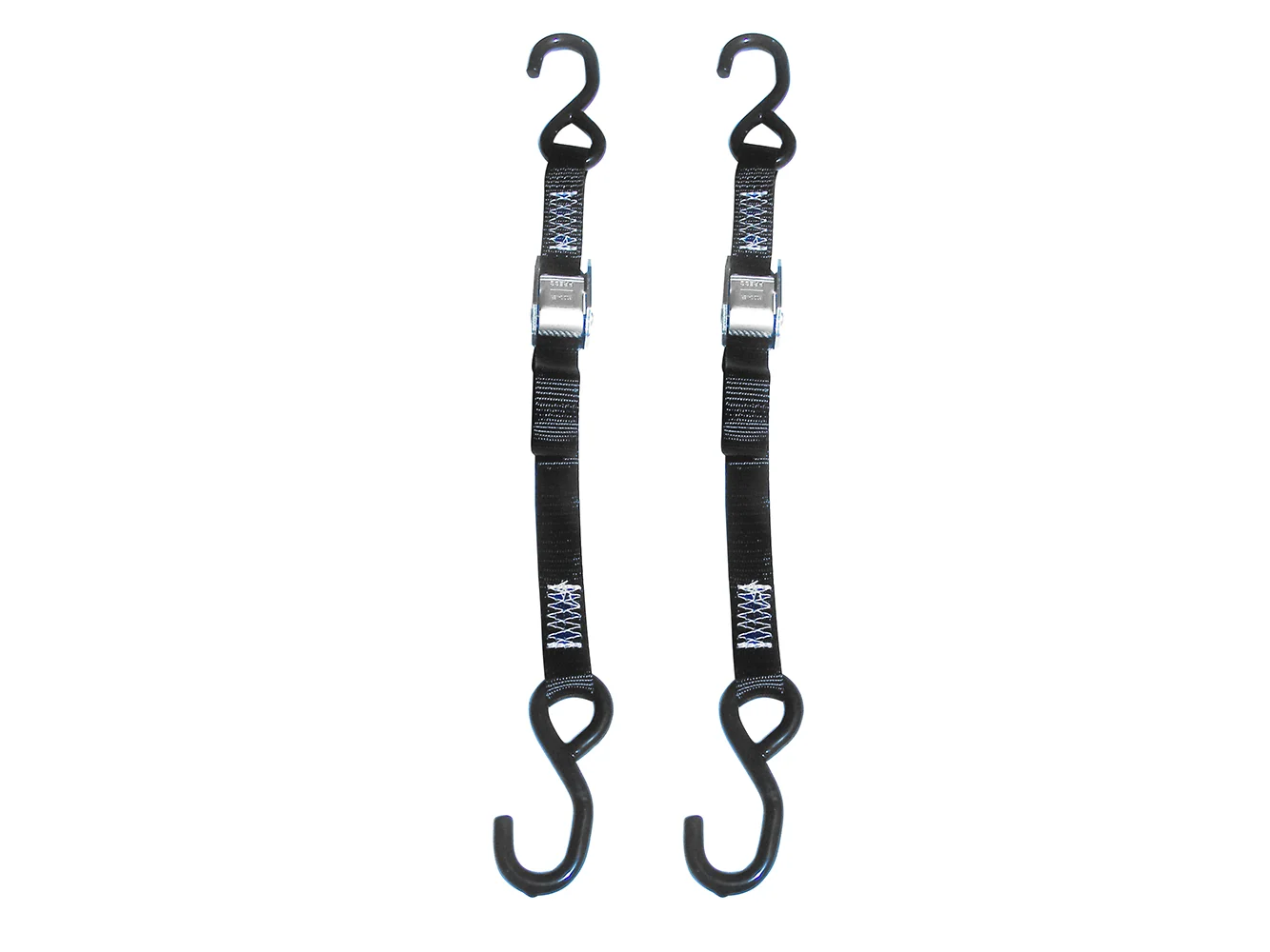 This is a pair of 1″ x 2′ Tie-Downs with vinyl coated top and bottom hooks. It has a smooth roller action cam buckle for quick and easy removal.