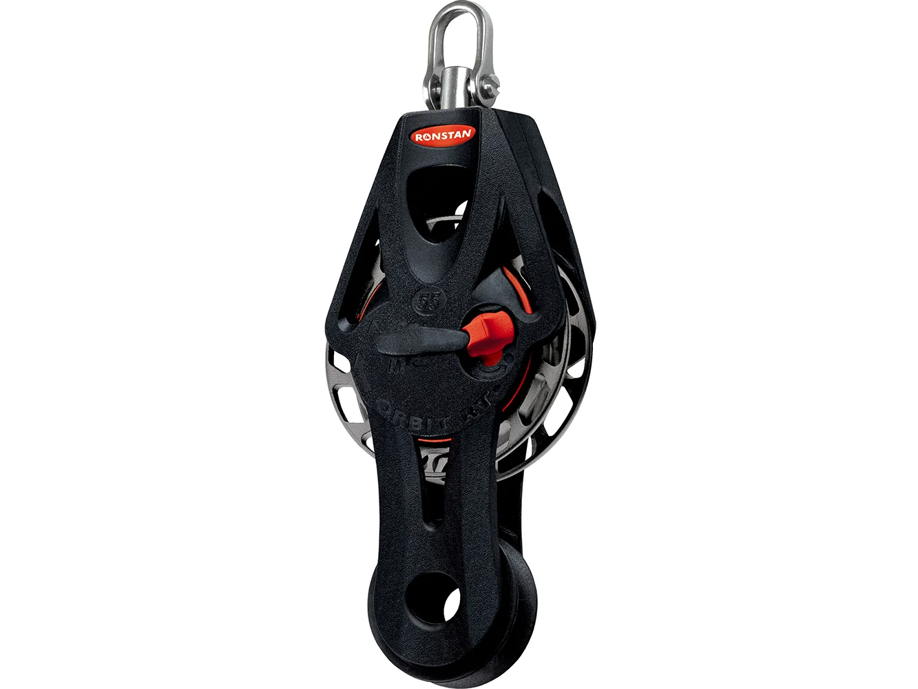 Quite simply, Ronstan Ratchet Orbit Blocks™ have the highest holding power available. The sophisticated NC-machined sheave features Generation 2 of our patented sheave cross-hole geometry. Its holding power is up to 21:1, almost double that of our nearest competitor. The unique sheave design has 12 gripping faces which directly resist loaded line movement. Traditional designs have only 8 faces with an angled resistance to line movement. Our Generation 2 design has straight resistance faces which both distribute the load and minimize rope wear. These faces are offset from the radial line, to draw the rope down into the gripping area when under load