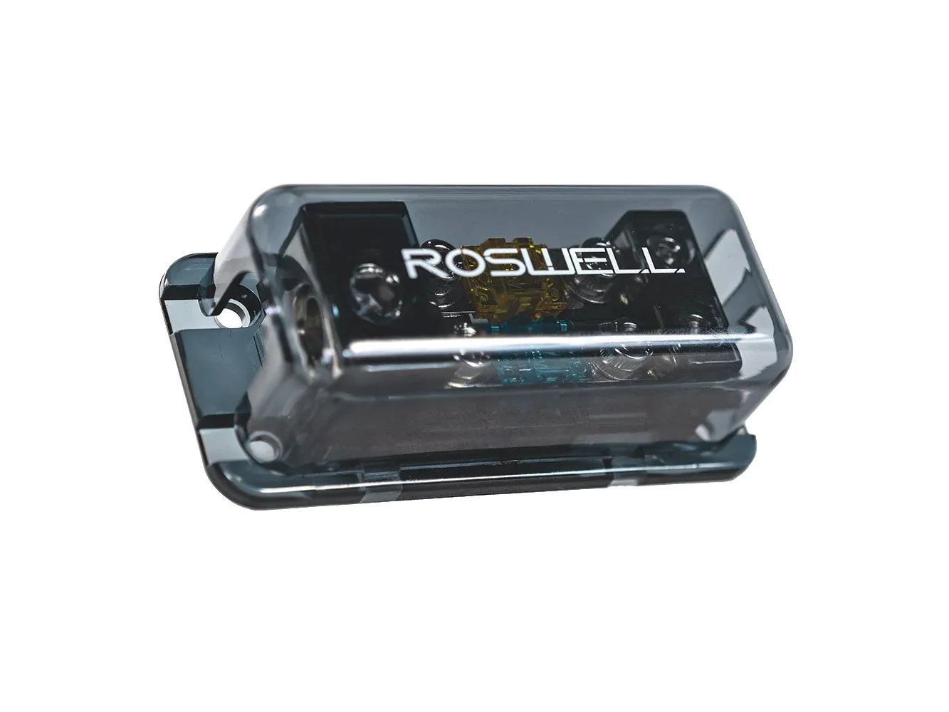 The Roswell 1-in-2-out distribution block is everything a boat’s audio system has ever needed. Roswell’s distribution blocks are machined out of nickel to provide rock-solid electrical connections and are protected by strong, injection-molded plastic covers. They are designed to accept both ANL and Mini ANL fuses for additional versatility and feature machined nickel inserts to accommodate multiple sizes of wire.