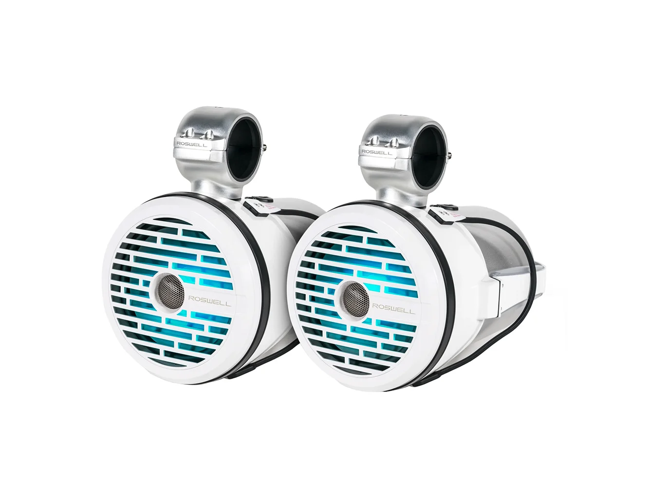 The R1 8″ tower speakers are a great addition to any marine audio system. Roswell took all the features and performance of the R1 Speakers and integrated them into a durable aluminum housing, so users can enjoy music while riding behind the boat or chilling on the sandbar. The housings also feature integrated RGB LEDs that can either be wired for a single color or connected to our RGB remote and controller. All housing components are either anodized or painted with CRE to ensure they will not only hold up in harsh environments but also look good doing it.