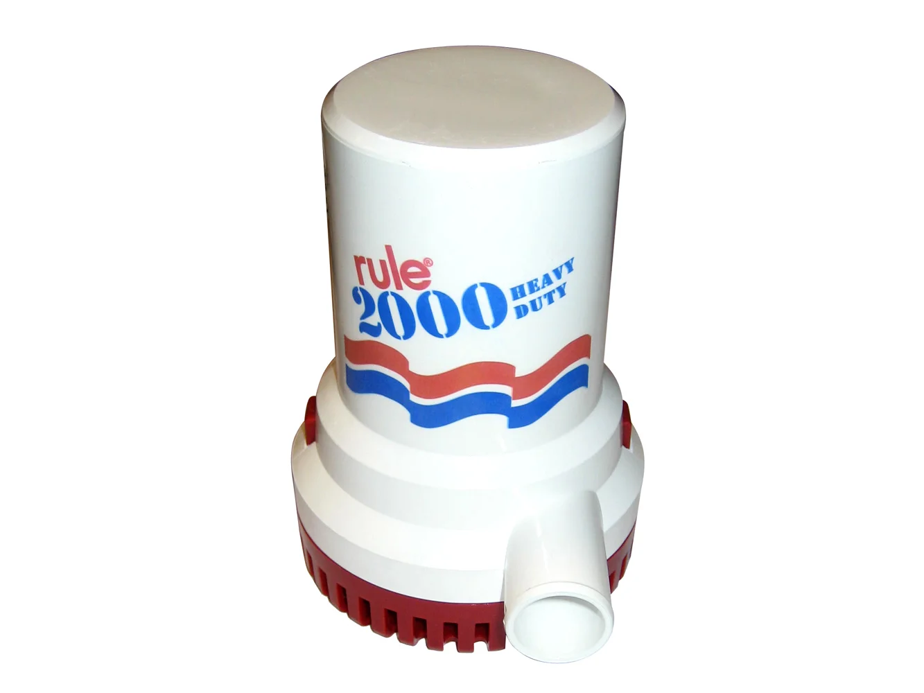 Engineered to commercial standards. The Rule 2000 is the best selling high capacity submersible bilge pump in the world. 1-1/8″ (28.6mm) discharge outlet. 24 Volts DC .