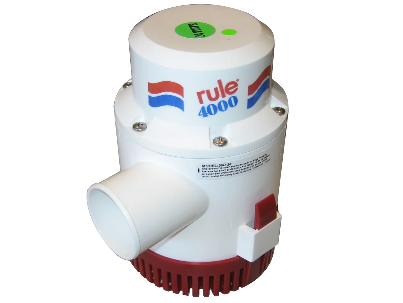 Designed for the toughest applications, the 4000 gph (15140 lph) pump optimizes Rule’s exclusive design features to produce the highest capacity available for a pump its size. 2″ (51mm) discharge outlet.