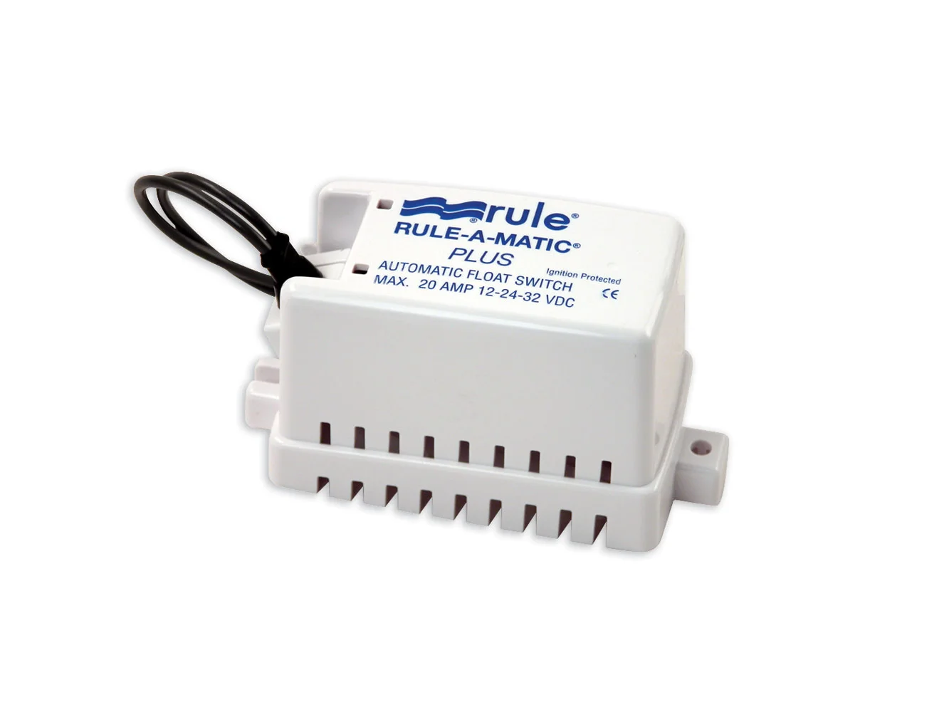 Sleek and rugged, the Rule-A-Matic Plus float switch has a strong, fully integrated, impact resistant cover, which protects against debris and jamming. 14 gauge highly abrasive resistant marine grade wire, and a built-in test feature. Designed for pumps drawing up to 20 Amps Model 40FA now includes a 2 year warranty.