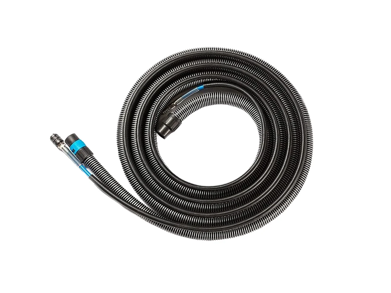 Available in multiple lengths and configurations, the RUPES Anti-Static Hose assembly is designed to connect with the RUPES S145EPL portable dust extraction system and can be connected to either electric or pneumatic tools equipped with a centralized dust extraction port. The specialized anti-static treatment prevents the buildup of static electricity caused by dust particles moving through the vacuum hose.