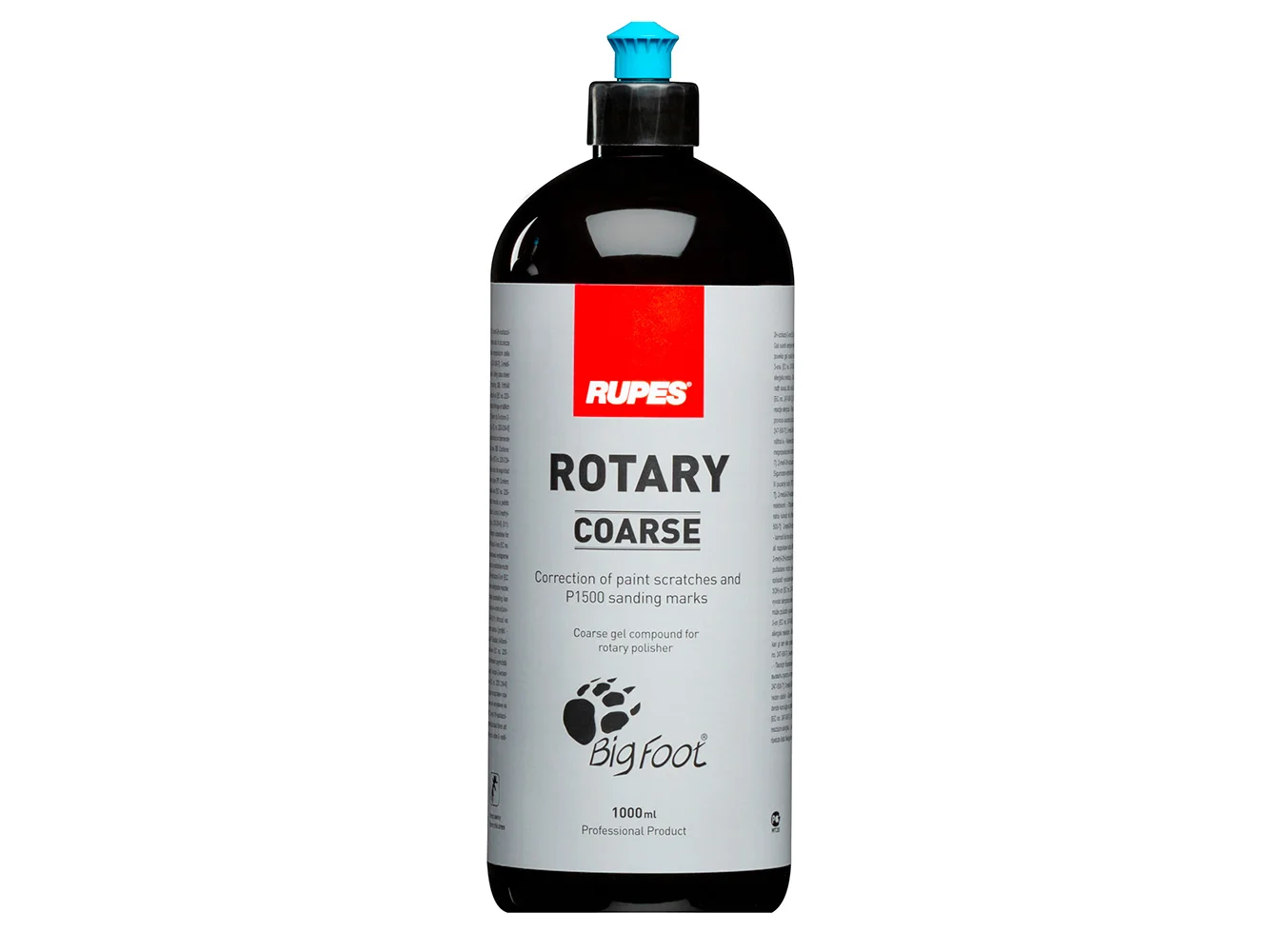 The BigFoot polishing compounds for rotary polishers are specifically designed for RUPES LH19E rotary polisher maximum efficiency. It is paint shop safe and suitable for any car paint, refinish, or OEM. It is the ideal product to obtain the correct mix of fast cutting and good finish. The Coarse Rotary is a high-performance compound recommended for first-step polishing. Its grain is the most “aggressive” of the BigFoot abrasives and is used for the rapid removal of marks and scratches. At the same time, Coarse compound is highly effective in restoring paints and creating a high degree of gloss.