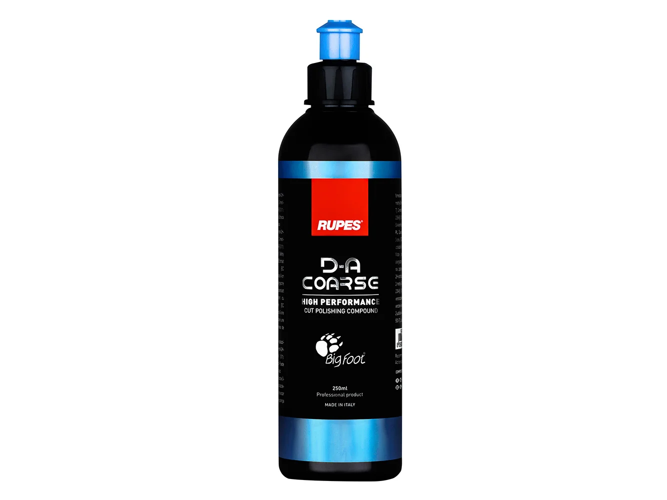 RUPES D-A COARSE is the latest high-performance compound from RUPES designed for maximum efficiency. This fast-cutting compound is ideal for users who want quick defect removal and a smooth user experience on every type of paint. The formulation is optimized to achieve the best performance if used with RUPES Coarse blue foam, DA wool pads, or coarse microfiber discs together with BigFoot Dual Action Polishers, including both random orbital and gear-driven tools.