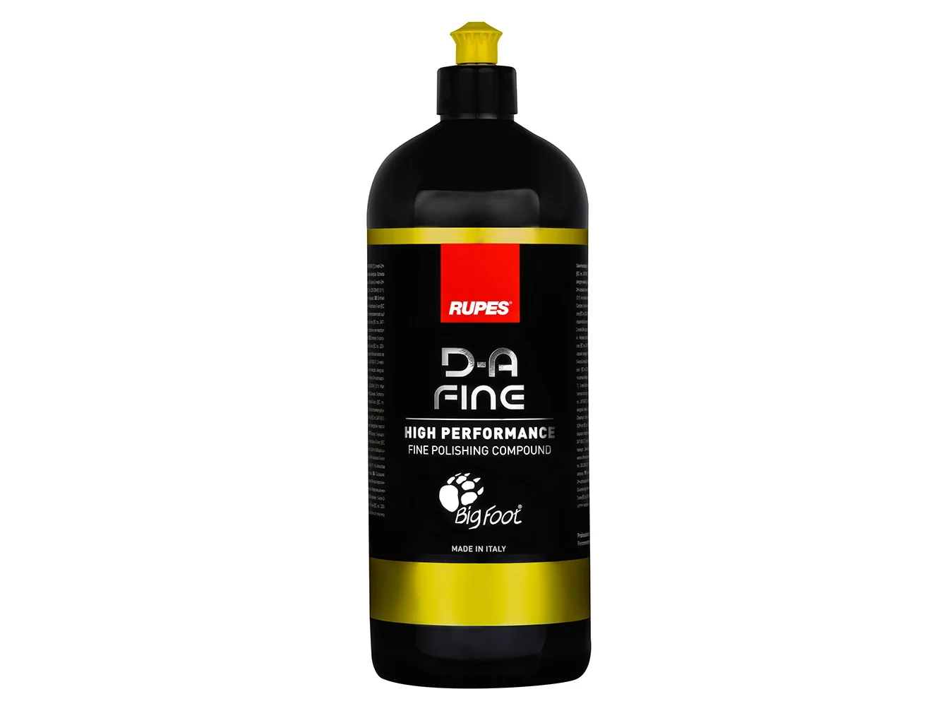 RUPES D-A FINE is the result of extensive testing to develop a fine polish that combines noticeable cutting performance with impressive finishing. The proprietary formula developed and blended in-house by RUPES is designed to perform with Dual Action polishers, including both large-stroke random orbital and gear-driven tools. Color-coordinated to RUPES yellow foam, wool, and microfiber pads, DA-FINE delivers excellent defect removal, incredibly high finish quality, and a super-easy wipe off for an excellent user experience. DA-FINE represents the perfect second polishing step after DA-COARSE on virtually every type of painted, gelcoat, or varnished finish or as a stand-alone solution for light polishing needs.
