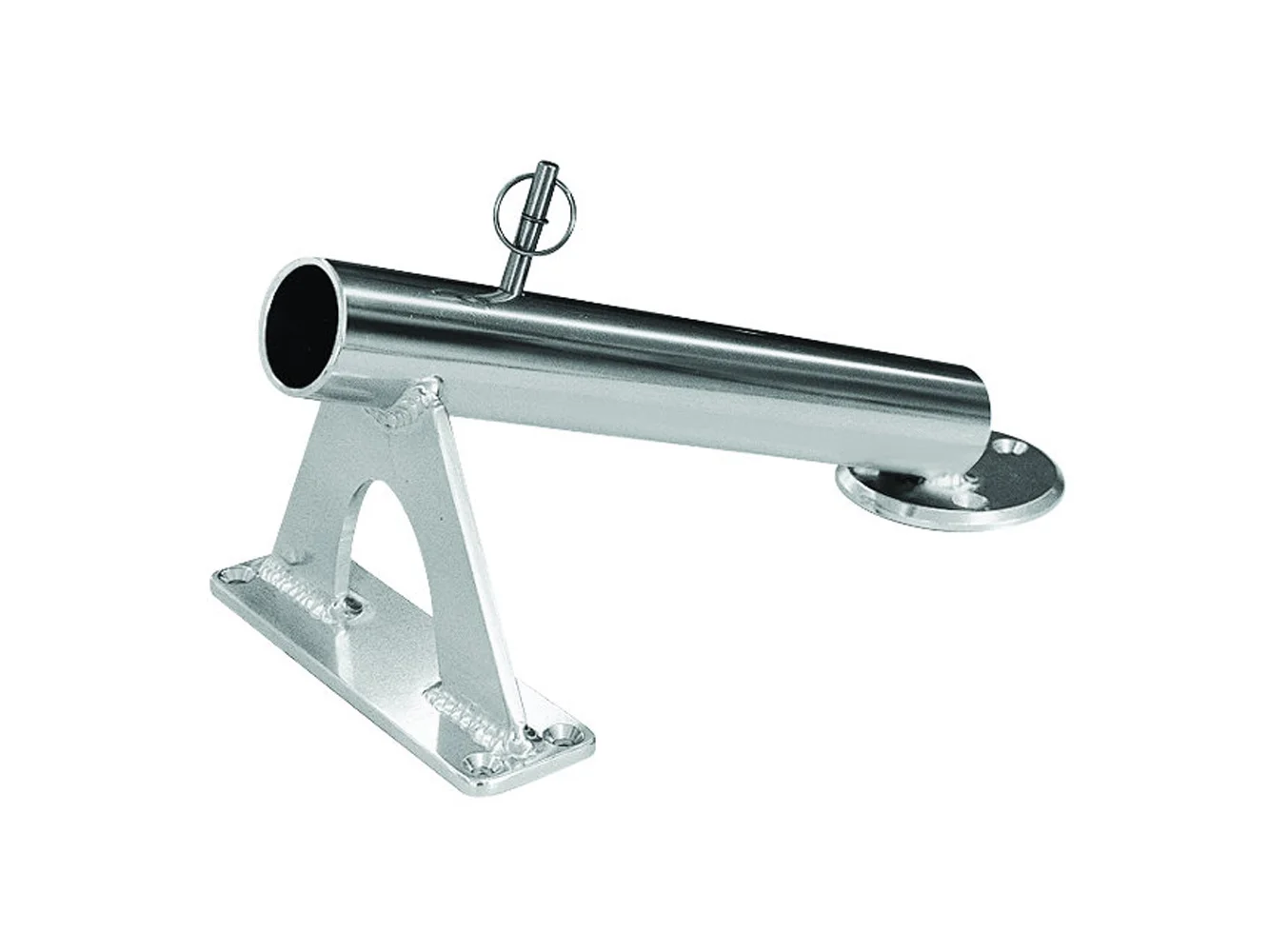 This fixed center rigger mount is a top quality welded assembly, highly polished and anodized to match your vessel’s tower. Fixed angle set at 21 degrees. Accepts any center rigger pole with outside diameter of 1.50″.