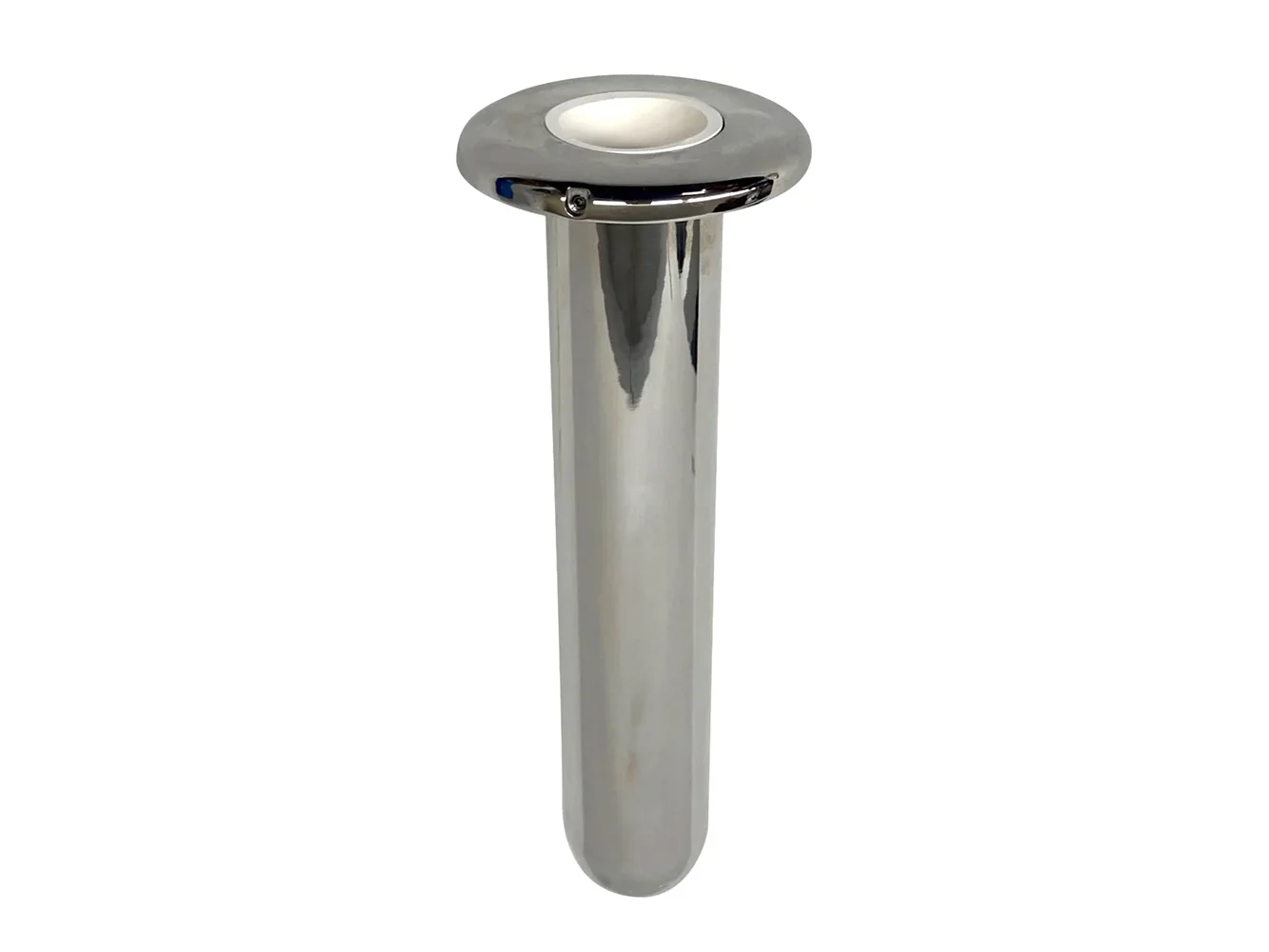 2020 IBEX Innovation Award Winner. This patent-pending rod holder is a game changer! Manufactured from investment cast stainless steel the innovative design combines the easy installation of a standard rod holder with the sleek look of a bolt-less rod holder. No special tools or fasteners are required. This rod holder features a removable and replaceable top flange for easy customization, replacement, or re-polishing. Closed-end with threaded drain hole. This is the last rod holder you will need on your boat…ever!