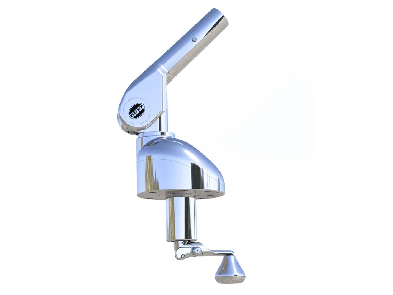 Effortlessly open or close the integrated toggle to switch between in/out and up/down operations. Our reliable 30:1 gear drive system is designed for effortless deployment of even large outrigger poles – regardless of sea conditions. Our design eliminates the need to flip a handle for locking. 360 degrees for maximum fishing positions. Constructed of heavy-duty stainless steel and compatible with a 3×5 bolt pattern, it can easily replace most existing outrigger bases. Multiple handle configurations and two shaft lengths to choose from (call).