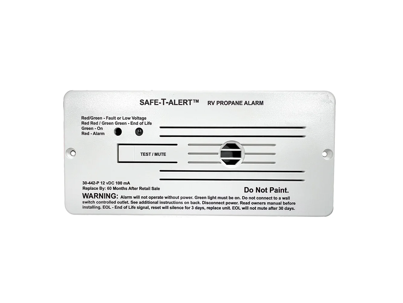 Meets requirements set by RVIA for LP Gas Alarms on RVs. Test/Reset Button – Mute alarm during ventilation. Tests all detector functions with 1 touch. No dangerous gas is required. The alarm is fully operational during the mute cycle and will re-alarm if hazardous conditions recur. Built for the extreme RV environment. UL listed for RVs and Unconditioned Areas.