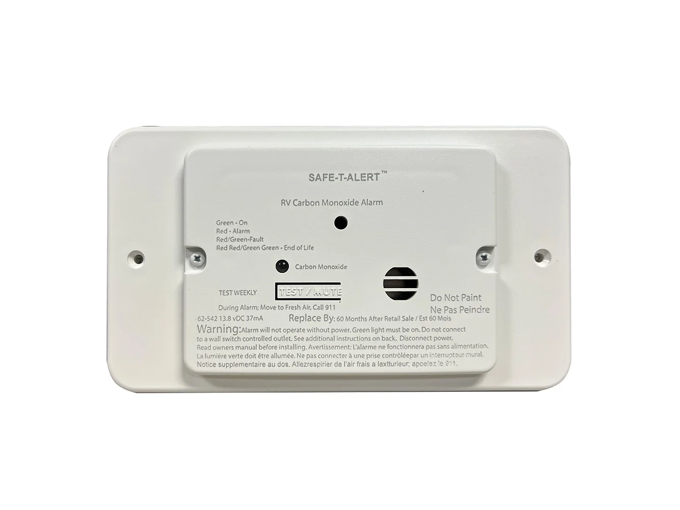 62 Series RV Carbon Monoxide – White – Flush Mount – 12V with Trim Ring