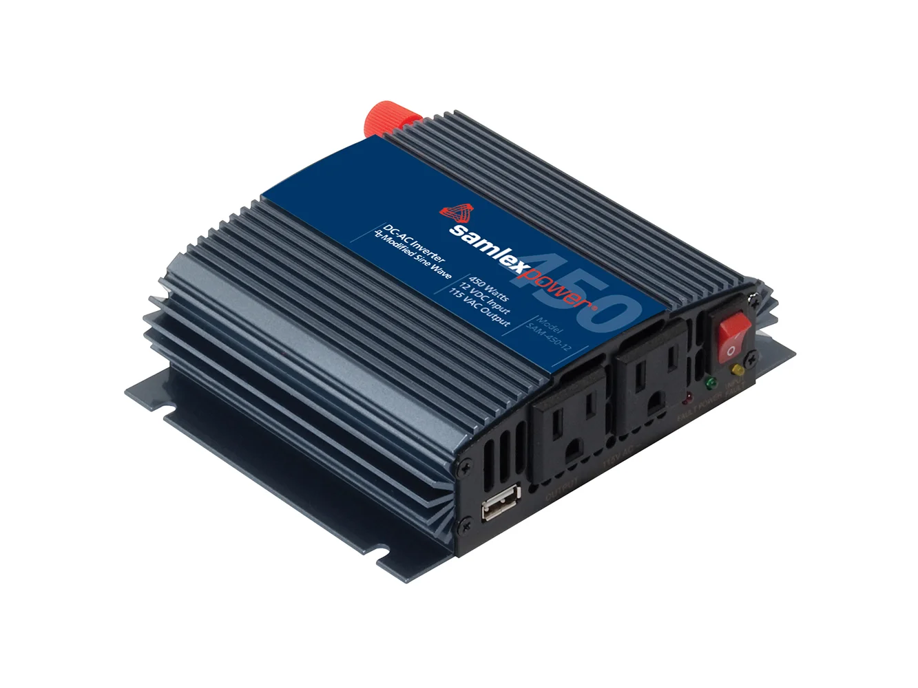 SAM Series low interference, high efficiency modified sine wave DC-AC inverters convert 12 VDC to 115 VAC at an output frequency of 60 Hz. Connect through any 12V lighter socket in your car, boat, truck or RV.