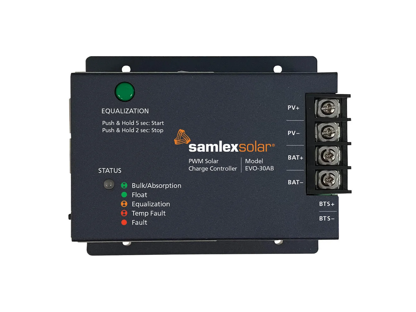 Use the Samlex EVO-30AB Charge Controller as a stand-alone 30 amp solar charge controller or expand the functionality of the EVO-RC-PLUS as the central display for both your EVO inverter/charger and your solar system.