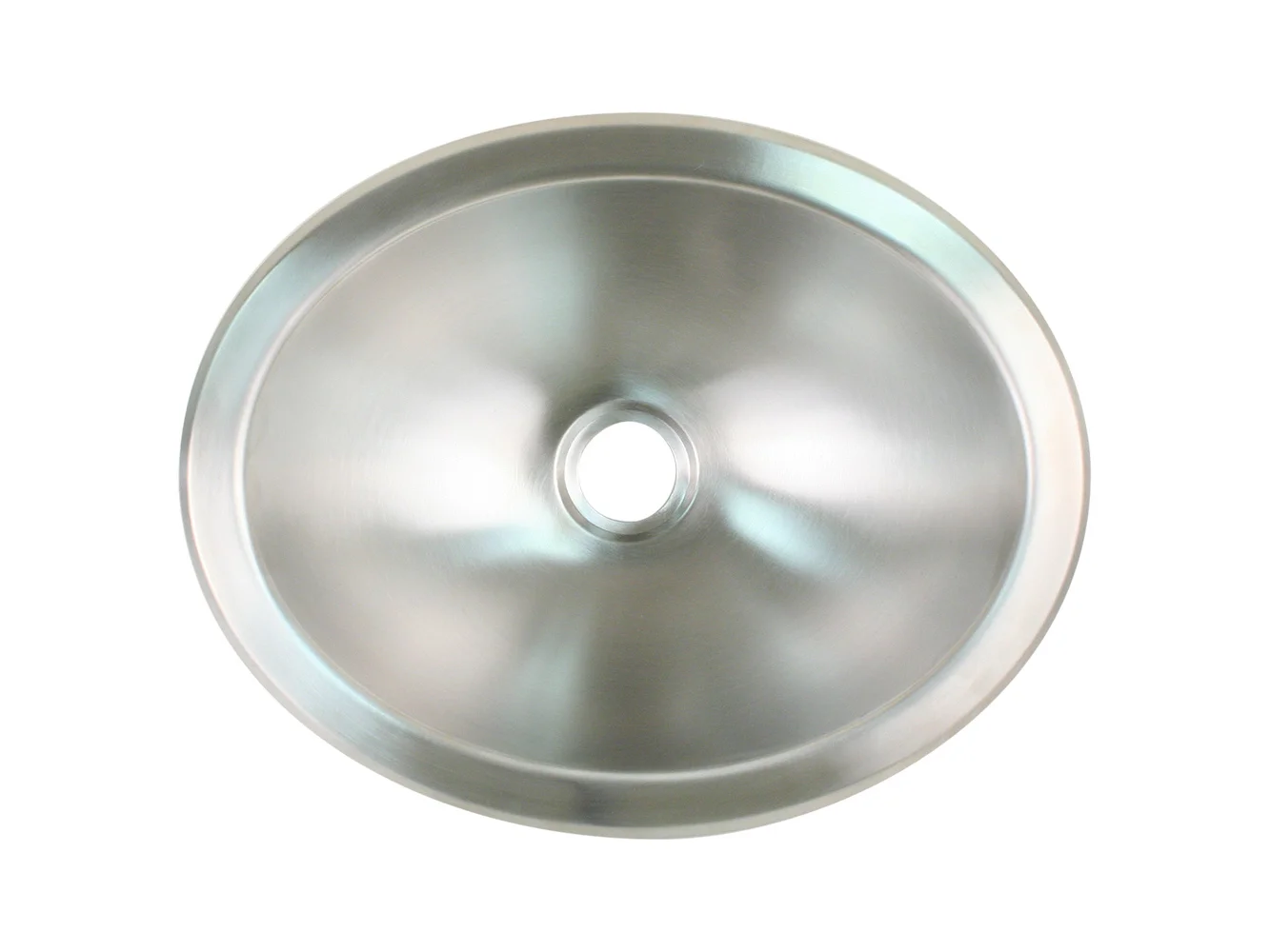 This oval basin is 10 x 13 in. and is brushed-finished with a large (1 in.) flange.