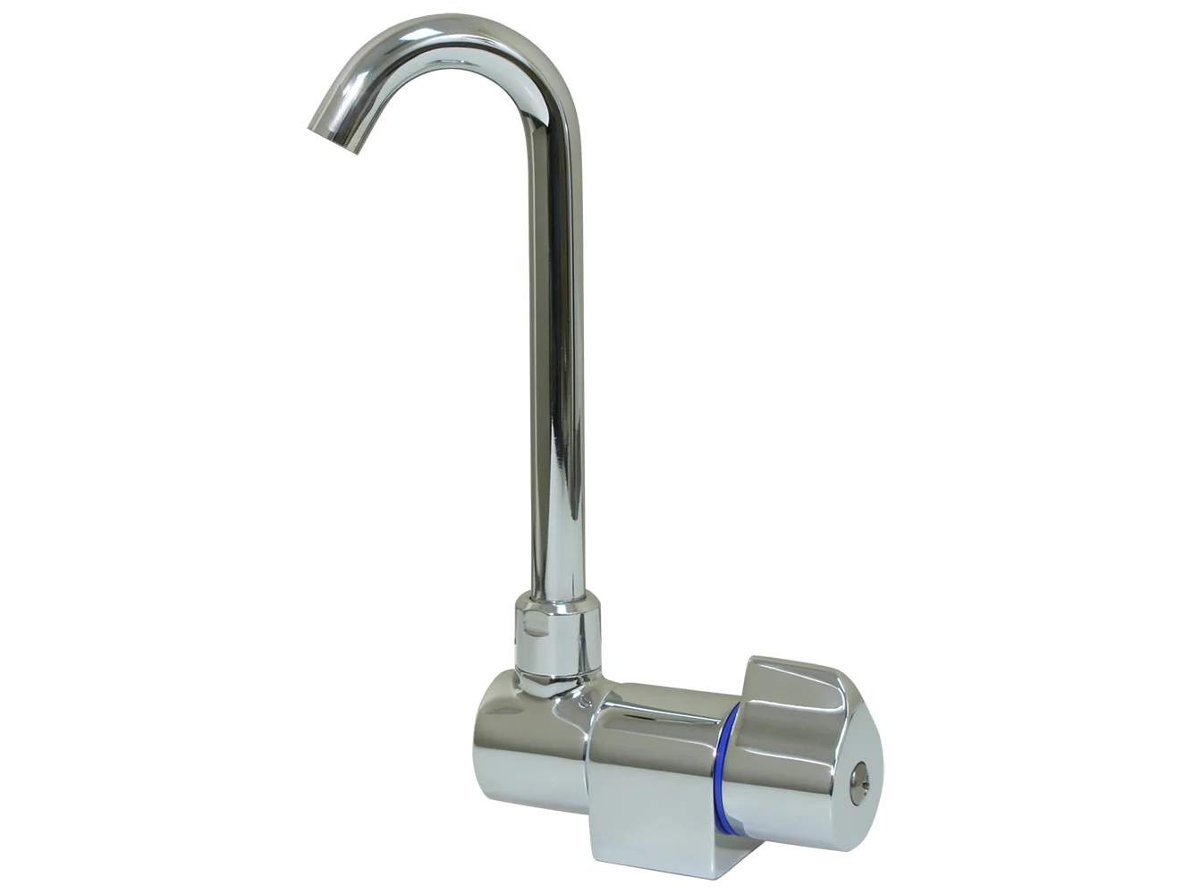 Folding cold water tap with a high-reach swivel and folding spout. This particular part has a chrome finish.