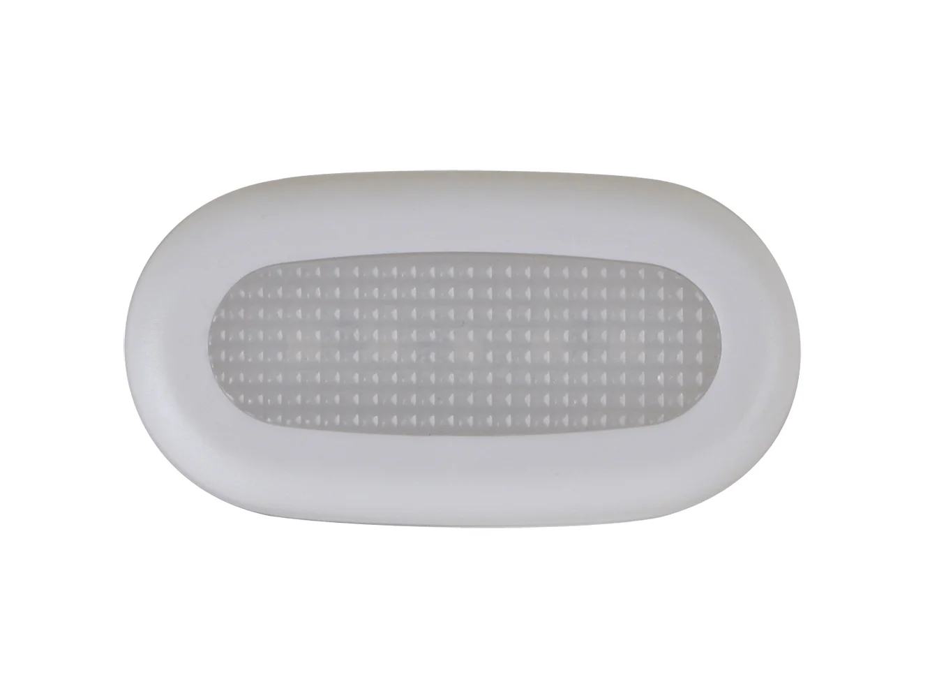 The light has an ABS housing featuring a diamond-cut lens and a white snap-on trim ring with white LEDs. It is great for illuminating walkways or steps and is available in 12V only.