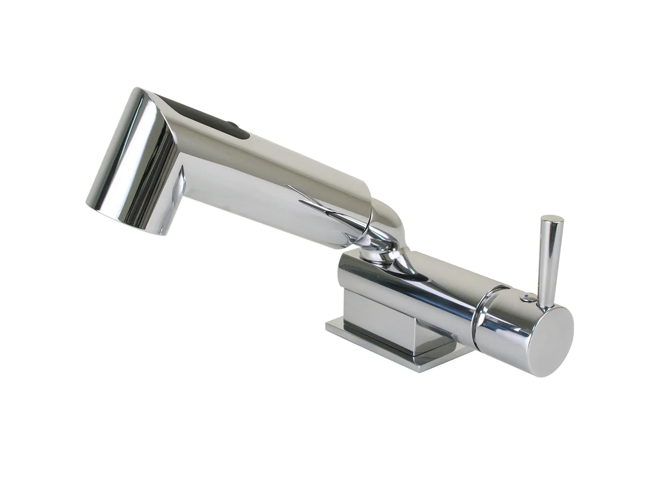 The minimalist single-lever design of the combination faucet and shower mixer combines modern lines with elegance. Press the button on the back of the handle to switch between aerated water flow and shower spray.