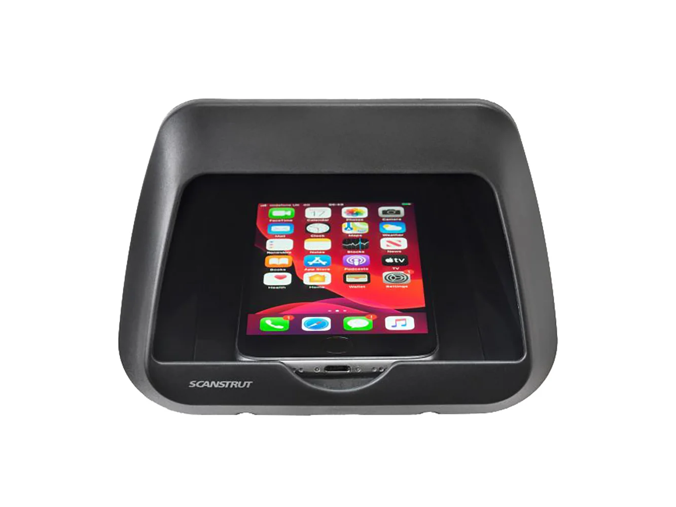 Rounded corners and tapered front design eliminate all snagging risks, making it possible to install in high-traffic areas of the boat where phone charging/storage until now has been impossible.