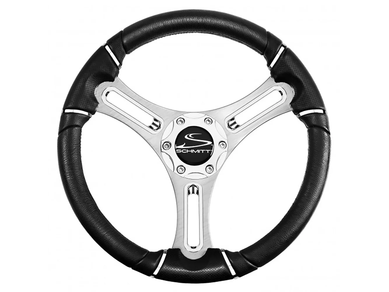 The 04 Series Torcello Wheel is a black polyurethane steering wheel with brushed spokes. Best suited for ski boats, wakeboard boats, runabouts, or pontoons that run in freshwater applications.