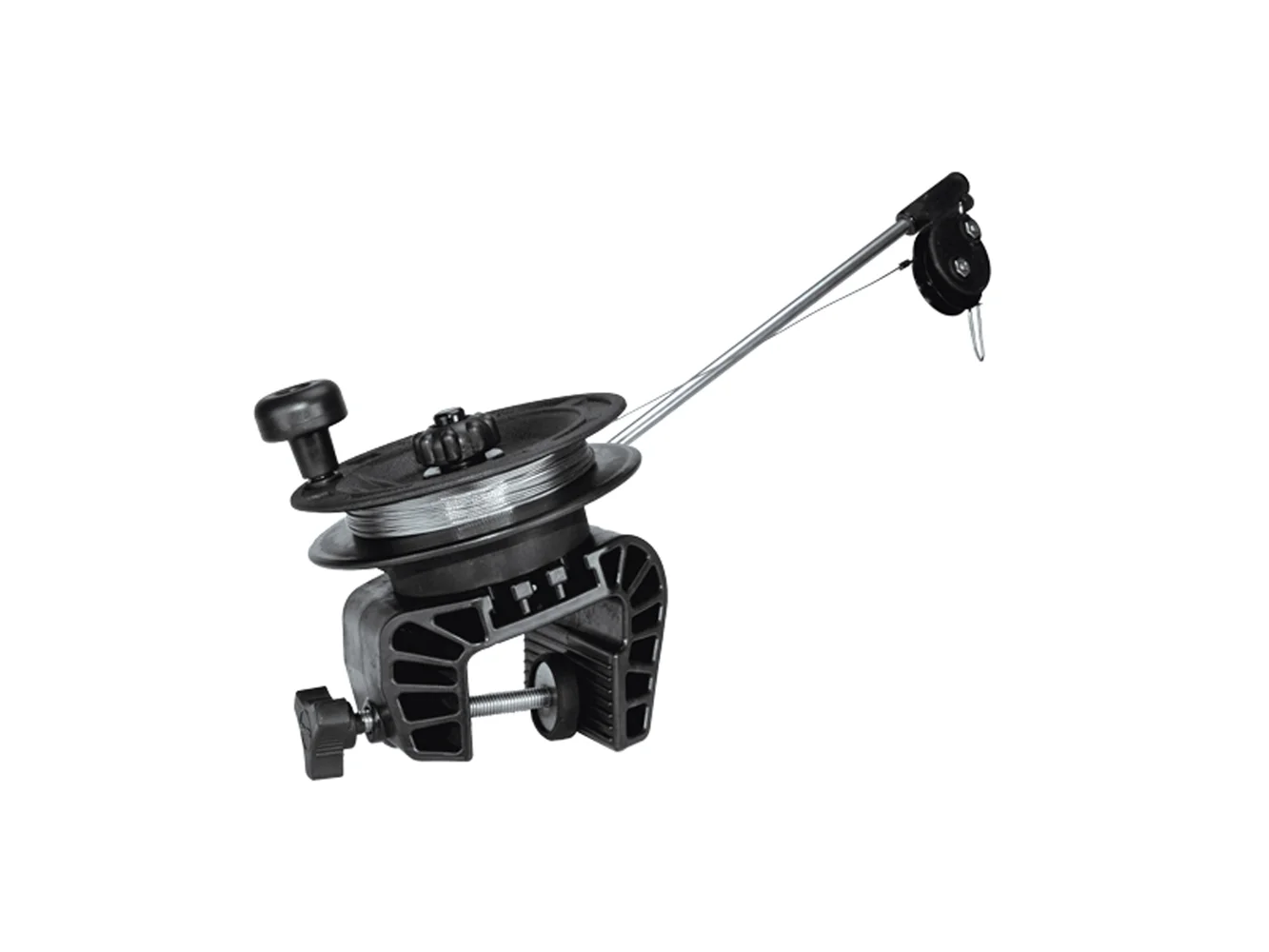 Comes with fully portable anodized aluminum clamp for mounting on the gunnel or transom (2″ opening).