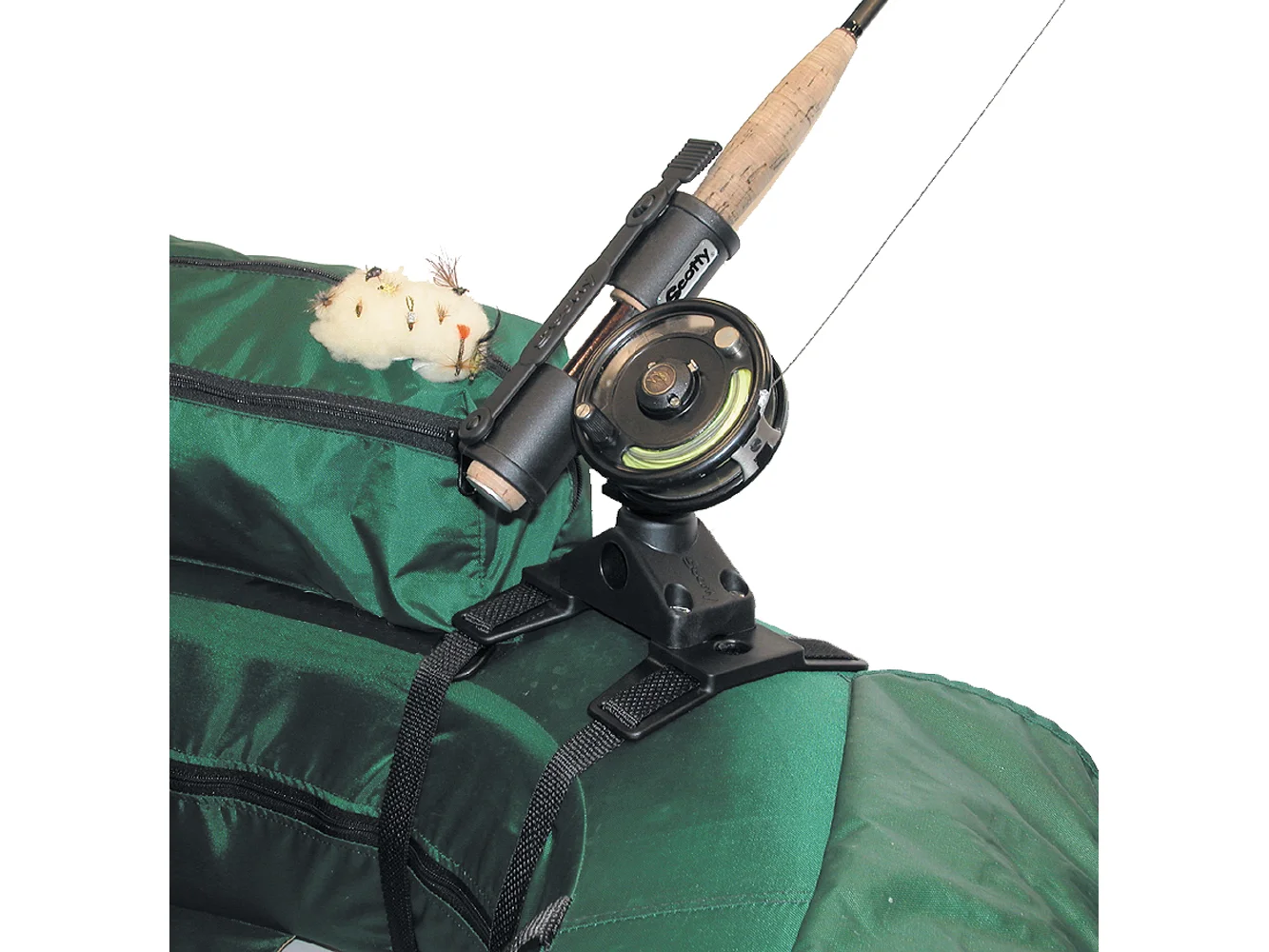 The Fly Rod Holder combined with adjustable wrap-around straps and quick-release clips to use with your float tube or pontoon boat