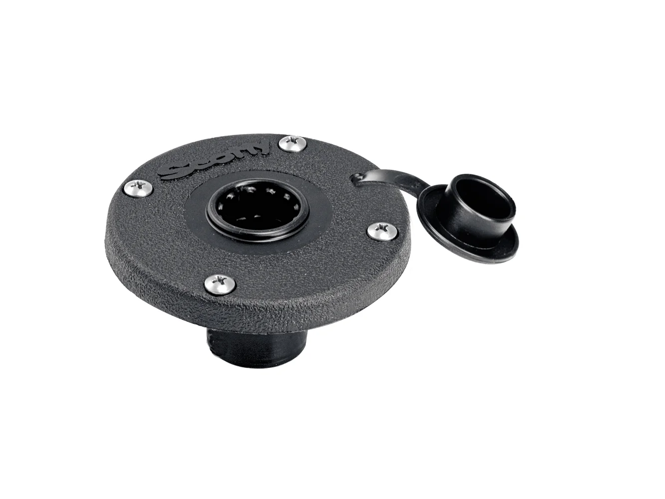 Sealed base for watertight applications (such as kayak decks) with splash cover.