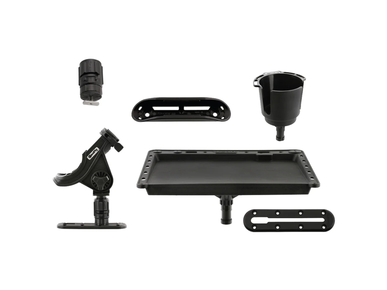 Fishing essentials for outfitting your Kayak. The Kayak Starter Pack includes a 282 Baitcaster Spinning Rod Holder with Gear Head & Track-Holds a bait caster reel securely in the cushioned cradle. 438 Gear Head Track Adapter-slide the Gear Head into any of our 440 series track, twist the gear head clockwise to securely lock. 440-4 4” Low Profile Track-top load design allows for quick and easy setup. 311 Drink Holder-fits cans, coffee mugs and insulated sleeves. 136 Paddle Clip-holds your paddle, net, gaff & boat hook. 455 Baitboard & Accessory Tray-Exterior tray walls lets you cut bait and prep lures. Also included are your Stainless steel fasteners-18 pieces #10 x 5/8.