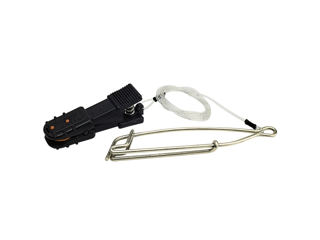 The fishing line is gripped between the soft pads with variable release tension attained by moving the line in or out of the jaws