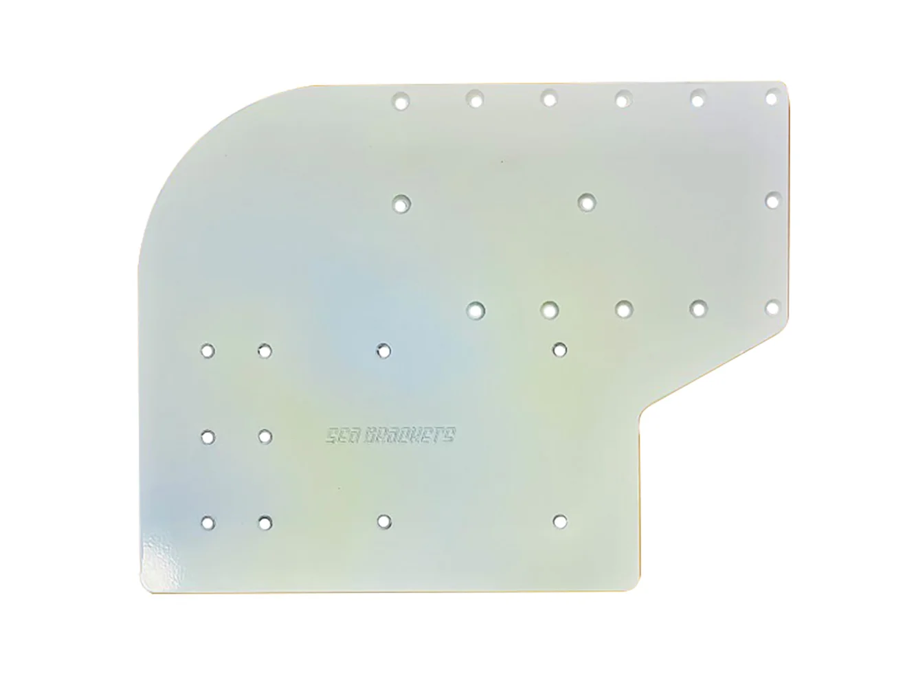The Sea Brackets Large Offset Trolling Motor Mounting Plate, designed for Minn Kota’s RTA-55 Quick Release Bracket, offers a robust and reliable solution for installing any Quest Series Trolling motor. Crafted from 6061 T6 aluminum, each plate is primed, powder-coated, and UV-protected for exceptional durability against the elements. Whether for port or starboard installation, these plates boast clean, accurately gauged holes for seamless bolt engagement.