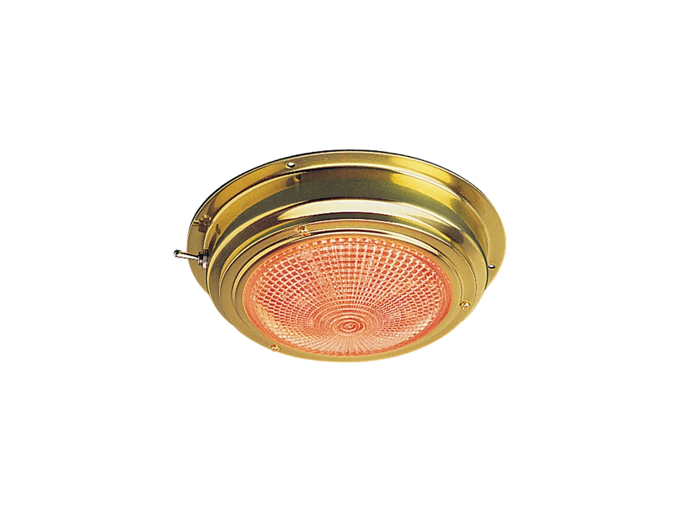 These LED Day/Night Dome Lights are constructed of stamped polished brass and are lacquer coated to prevent tarnish. Prewired with integral on/off/on toggle switch and two separate light circuits. One circuit uses a clear bulb and the other circuit uses a red night vision bulb. With the low current consumption of 0.068 amps @ 12 volts, they give off very little heat and feature an extremely long service life. These vibration resistant LED Dome Lights feature 18 white and 12 red LEDs per light. Surface mounts with three #6 RH fasteners (not included).