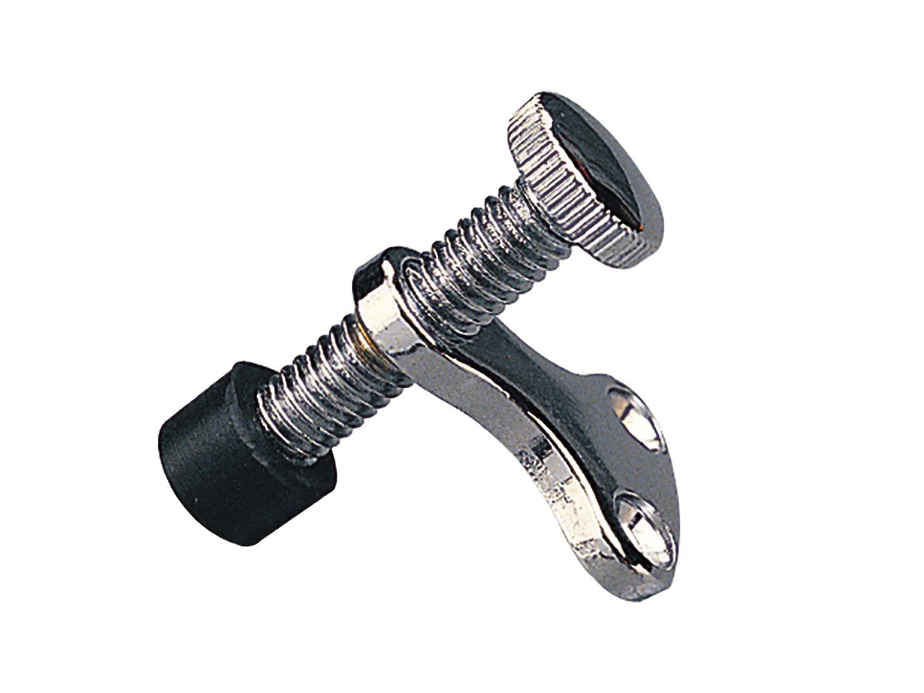 This Anti-Rattle Window Stop reduces vibration and noise while underway. Threaded pin tightens on shank. Constructed of chrome plated sand cast brass. Installs with two #6 FH fasteners (not included).