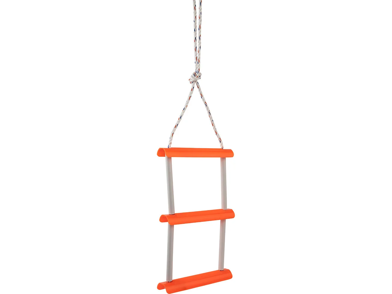 These Portable Emergency Boarding Ladders are made of molded-in, high-visibility orange polycarbonate with nylon rope supporting the frame. They secure quickly to cleats, railings, stanchions and halyards and will support up to 300 pounds.