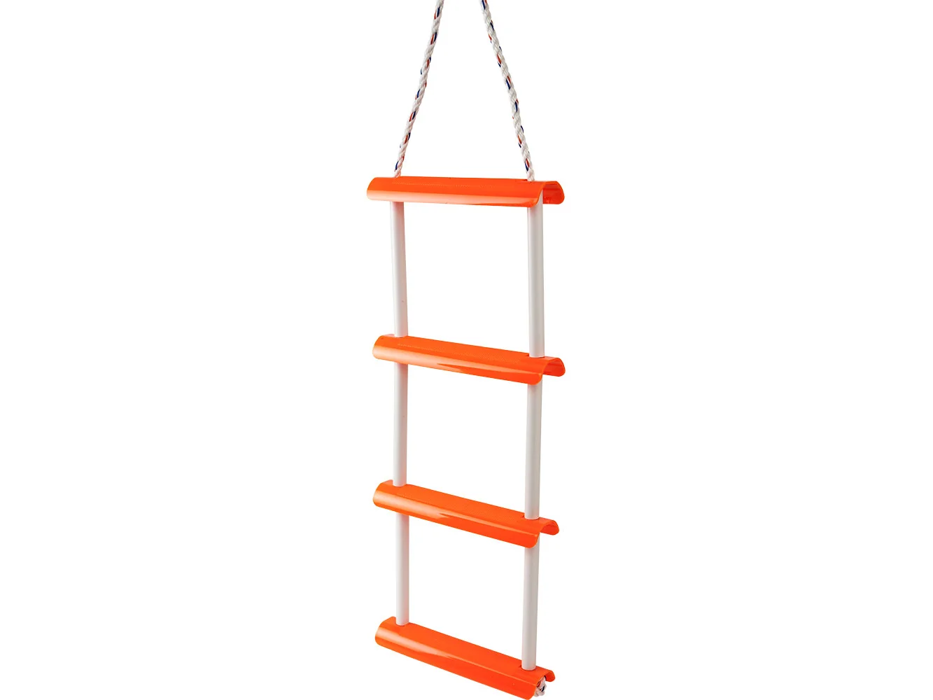 These Portable Emergency Boarding Ladders are made of molded-in, high-visibility orange polycarbonate with nylon rope supporting the frame. They secure quickly to cleats, railings, stanchions and halyards and will support up to 300 pounds.